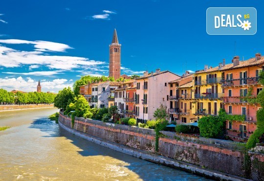 3 ден: Закуска. По желание, срещу допълнително заплащане екскурзия до Падова – градът пленяващ ни с най–стария университет, датиращ от 1222 г., Базиликата на Санта Джустина, красивия парк Платто де ла Вале с красивите ренесансови статуи, Катедралата на Св. Антоний – покровител на загубените вещи, съхранила мощите на светеца. Свободно време, за да се потопим в атмосферата на този древен град и да опитаме вкусните пици, паста, лазаня и ароматните инталиански вина, гарнирани с вкусното Тирамису и съботния колоритен пазар в града. Отпътуване за красивия курорт Сирмионе, разположен на полуостров в езерото Гарда, не напразно целунат от Боговете. Гръдът в който е живяла Мария Калас, изпълнен с много хотели, кокетно разположени около езерото, улицата с вкусните сладоледи, извисяващата се като стожер на града Рока Скалиджери, старинната църква на Мария и др. Възможност за приятна разходка с моторница, в езерото около останките от вилата на Гай Катуло,