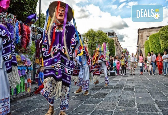 Закуска. Посещение на най-важната католическа църква в Мексико – храмът на Девата от Гваделупе, в който се пази чудотворната икона на най-почитаната светица – Девата от Гваделупе. Храмът се посещава от над 14 милиона поклонници годишно и е вторият по посещаемост католически храм след Ватикана.Програмата в този ден продължава с посещенние на магичния град на Сан Хуан Теотиуакан - Пирамидата на Луната и Пирамидата на Слънцето. На входа на града се намира и Пътят на смъртта, където са разположени – Храмът на Кецалкоатъл, Пирамидата на Слънцето и в края – Пирамидата на Луната. Да се изкачиш до върха на Пирамидата на Слънцето е не само акт на издръжливост, но и на духовност за много от посетителите. Това е и една от причините да се видят хора, облечени в бяло по време на пролетното равноденствие, а също така и в различно време от годината, оставяйки камъни, като кварц с идеята да се заредят с положителна енергия и да установят мистичен контакт с Бога на Слънцето.Нощувка в Оахака.