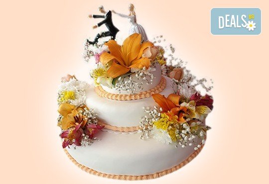 60 парчета сватбена торта с декорация истински цветя (предоставени от младоженците) + надпис