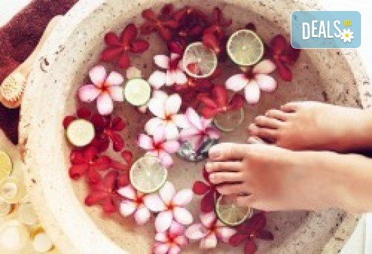 - • Терапевтичен, тип медицински СПА педикюр с професионални гел лакове CANNI;