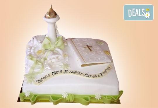 За кръщене! Красива тортa за Кръщенe с надпис "Честито свето кръщене", кръстче, Библия и свещ от Сладкарница Джорджо Джани