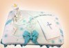 За кръщене! Красива тортa за Кръщенe с надпис "Честито свето кръщене", кръстче, Библия и свещ от Сладкарница Джорджо Джани