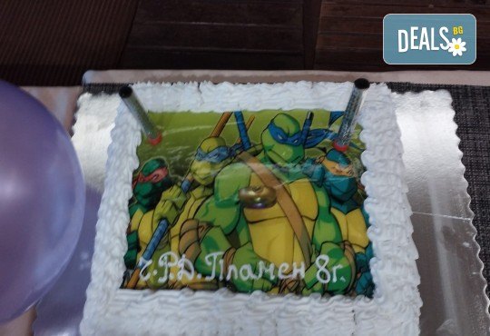 - • Голяма торта за момчета с 20, 25 или 30 парчета (според закупения вид ваучер) със снимка на любим герой