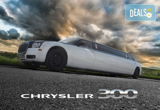 Бяла стреч-лимузина Chrysler 300 с капацитет 10 пасажера