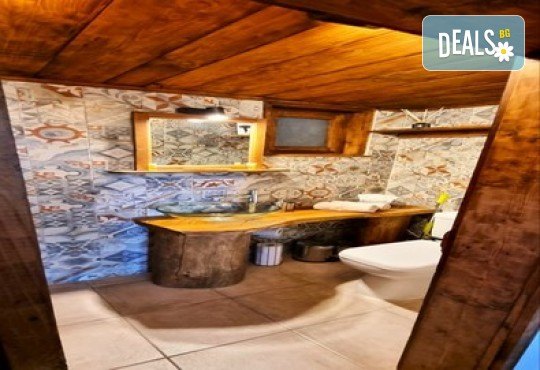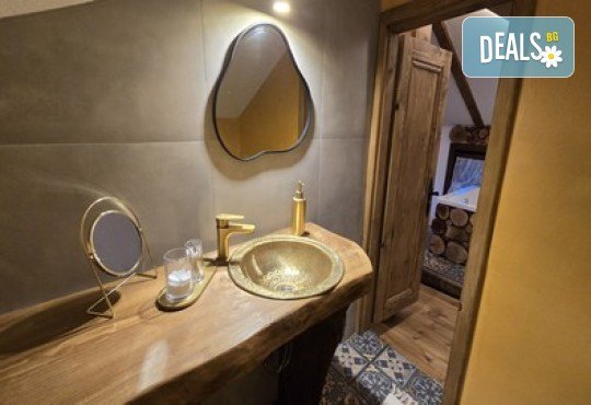 - • Хидромасажна вана в типичния за вилите стил, от която се открива гледка към Пирин;