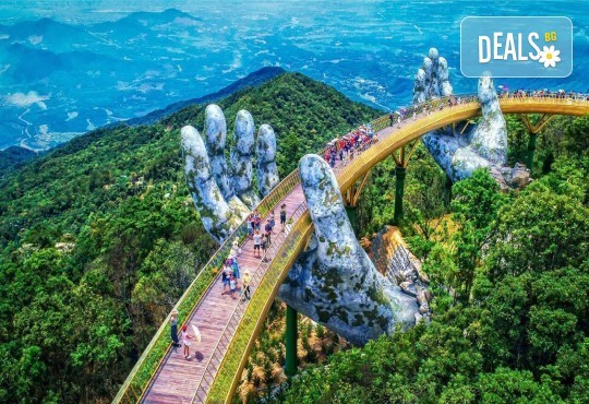 Обиколка с Vespa – живот в провинцията Сием Реап. Изкачване с лифт до комплекса Ба На Хилс- „Ръцете на Бога”, дълъг 150 метра пешеходен златен мост, едно от най-интересните места, които можем да посетим в света.Градчето Ба На Хилс се намира на 1,5ч път от Хой Ан. Известно е с прекраснана си природа и с най-дългата лифтова дъга в света (над 5 км). Основното предназначение на моста е да свърже лифта с началото на горите, без да е необходимо изкачването на стъпала. Гледан отстрани, златният мост изглежда като златна нишка, която две гигантски каменни божествени ръце издърпват от земята.Най-впечатляваща е гледката, когато се образува мъгла в долината под моста. Тогава усещането е сякаш стъпвате в облаците, защото мостът се намира на 1000 метра надморска височина!