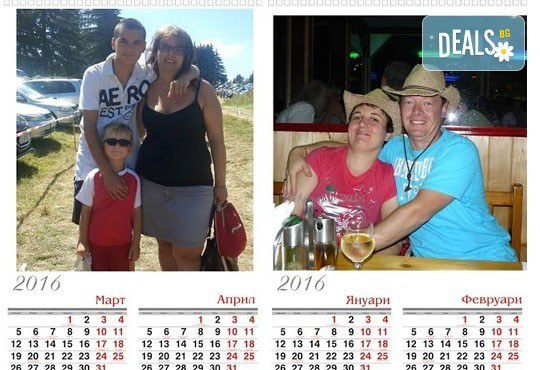 - 1 брой 6 листов календар с размери 33х48 см. На всеки лист има по 1 снимка изпратена от клиента и 2 месеца;