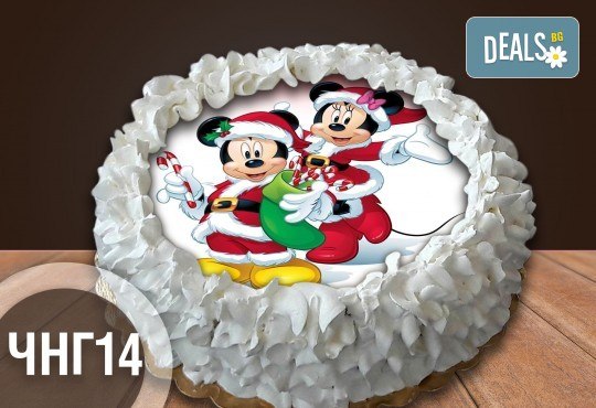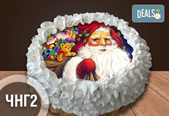Коледно-новогодишна за Коледа и Нова година! Торта с 8 парчета с крем и какаови блатове + коледна снимка или снимка на клиента, от Сладкарница Джорджо Джани