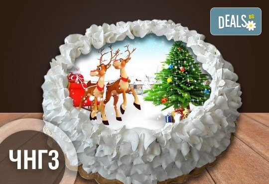 Коледно-новогодишна за Коледа и Нова година! Торта с 8 парчета с крем и какаови блатове + коледна снимка или снимка на клиента, от Сладкарница Джорджо Джани