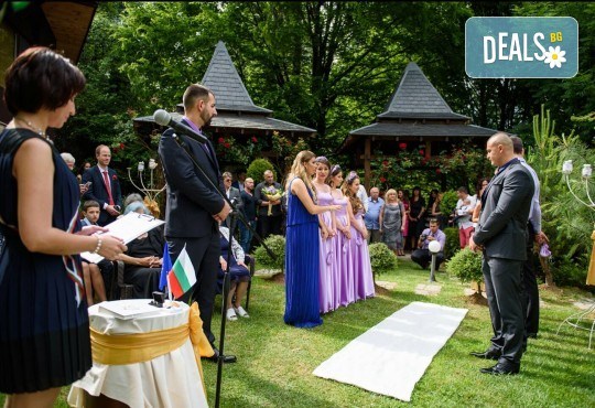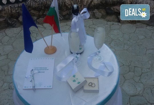 - • Пресъздаване на ритуала по подписване на гражданския брак пред гостите на сватбата;