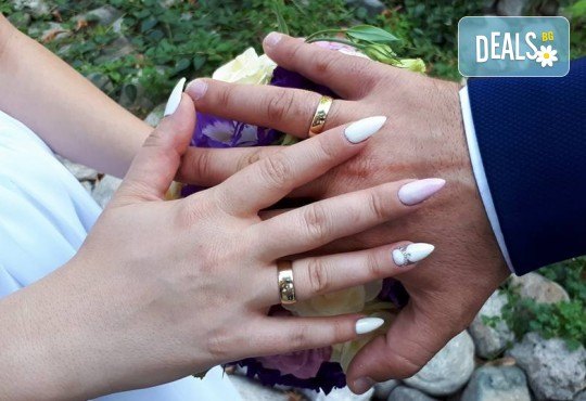 - • Ваучерът включва изготвяне на персонализиран луксозен лист в папка, на който младоженците се подписват по време на ритуала.