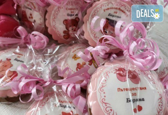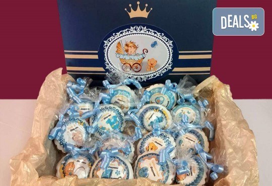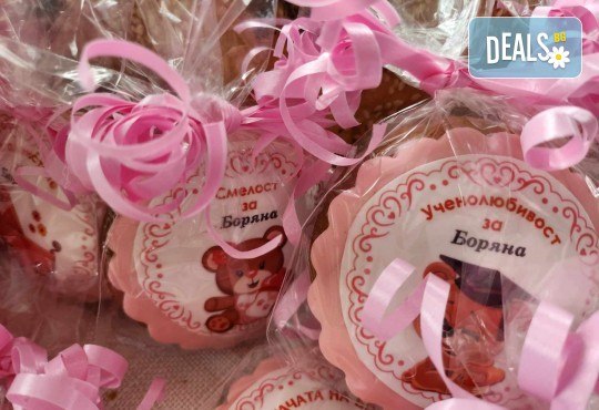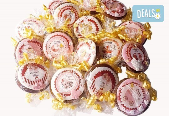 Меденки за бебешка погача! 12 или 24 бр. персонализирани меденки с надпис, име и пожелание, индивидуално опаковани от Сладкарница Джорджо Джани