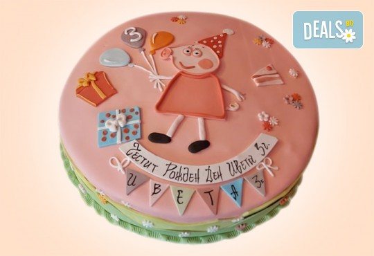 - • Детска торта с ръчно моделирана декорация - фигурка или апликация в размер по избор - брой парчета на тортата според избрания пакет.