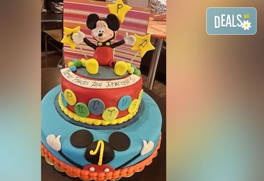 - • Торта "Мики Маус" на 3 етажа с пластмасова касичка може да се изработи от минимум 50 парчета;
