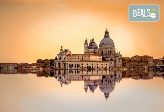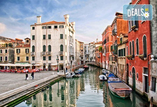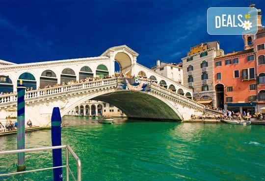 4 ден: Закуска. Отпътуване за Венеция. Разглеждане забележителностите: пл. Сан Марко, базиликата Сан Марко, двореца на Дожите и моста Риалто. Свободно време или допълнителна екскурзия (с доплащане) до островите Мурано и Бурано – прочутите острови в сърцето на Венецианската лагуна. Мурано е известен с ателиетата за художествено стъкло, а Бурано е островът на дантелите. Отпътуване за България вечерта.